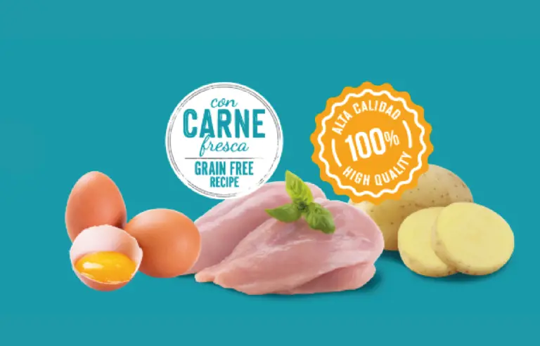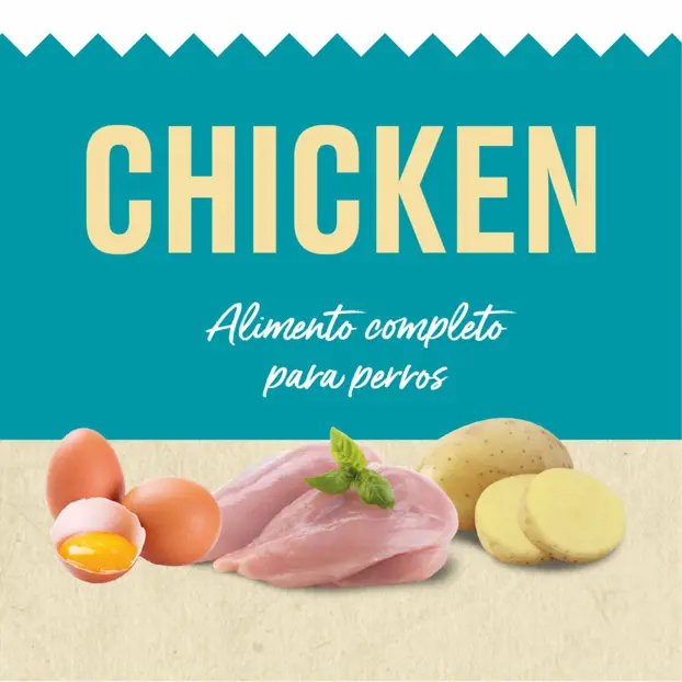 Carne fresca de pollo (min. 20%), patata, proteína hidrolizada de ave, legumbres, grasa de pollo, levadura de cerveza (Saccharomyces cerevisae), aceite de salmón rico en Ω3, hidrolizado de hígado de pollo, fibras vegetales (lignocelulosa), sustancias minerales, frutas y hortalizas (zanahoria, calabaza, manzana, calabacín, colinabo), huevo deshidratado (mín. 2%), extracto de yucca schidigera, complejo condroprotector (hidroclorato de glucosamina, sulfato de condroitina, extracto de mejillón de labios verdes (Perna canaliculus)), botánicos (caléndula, salvia, fenogreco, escaramujo, equinácea, eneldo), manano-oligosacáridos(MOS), fructo-oligosacáridos (FOS), extractos vegetales (frutos del bosque, diente de león, hojas de menta, semilla de té verde, tomillo, romero).