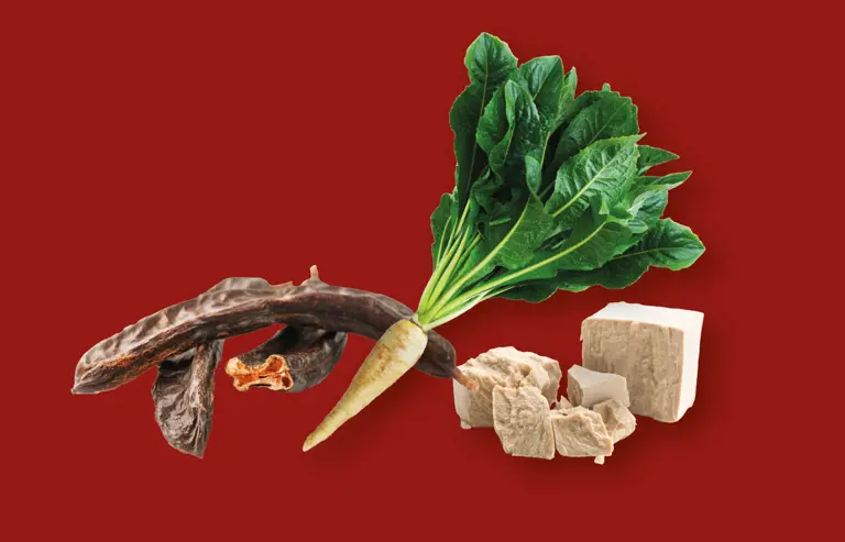 ingredientes seleccionados de alta calidad, sin colorantes artificiales. El proceso de producción que transforma los ingredientes individualmente garantiza su alta digestibilidad.